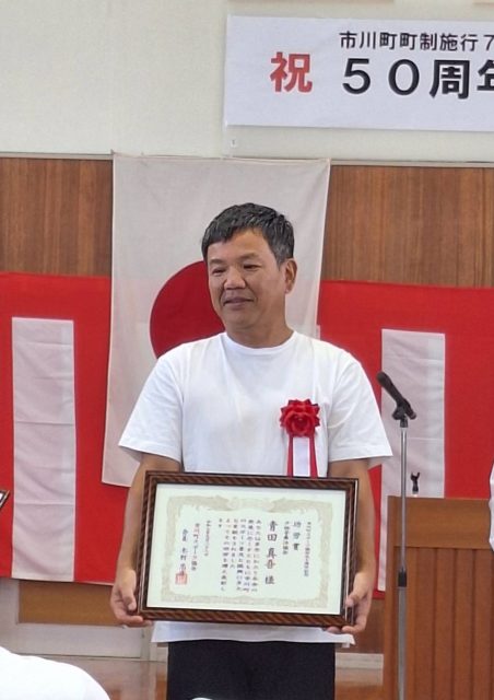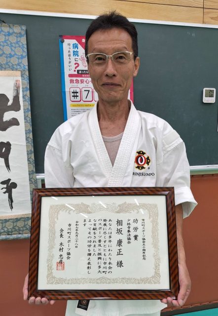 2025年9月28日、市川町スポーツ協会より相坂副道院長と青田幹部拳士が功労賞を受賞されました、おめでとうございます。