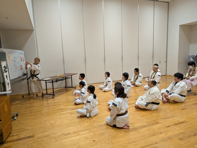 2月7日(土)に【法話学習会3回目】を開催しました。担当は岸田助教で、テーマは「少林寺拳法と金剛禅と金剛力士」。クリップボードを作って持参し、法話をしてくれました。内容は写真のホワイトボードに書いてあるとおり、お釈迦様を頂点に、菩薩、明王、天部と続き、天部の中に仁王さんがいて不法者からお釈迦様や仏法を守る役割をしていた。私たち少林寺拳法の拳士は「自己確立」と「自他共楽」の教えを守り、強い体と強い心を持ちイヤな事を言われたり、されたらハネ返す勇気と行動力を持ちましょう。と話してくれました。