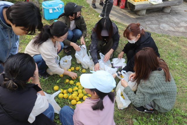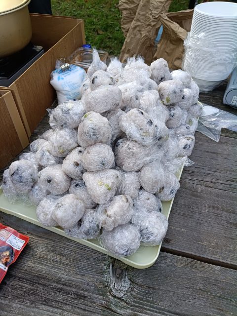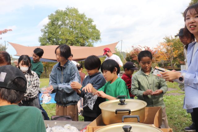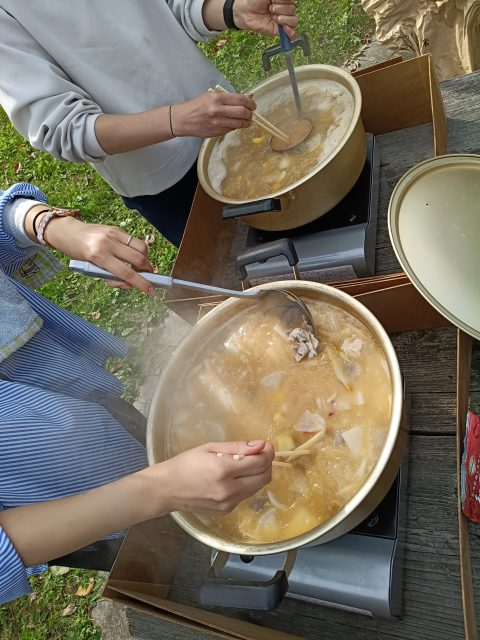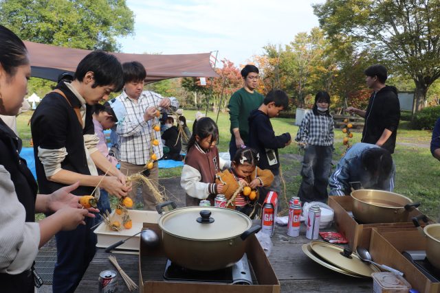 いつもの黒豆のおにぎりと豚汁をみんなで作りました。今年は藁でヒモを作って吊るし柿の体験をしました。楽しく 勉強しました
