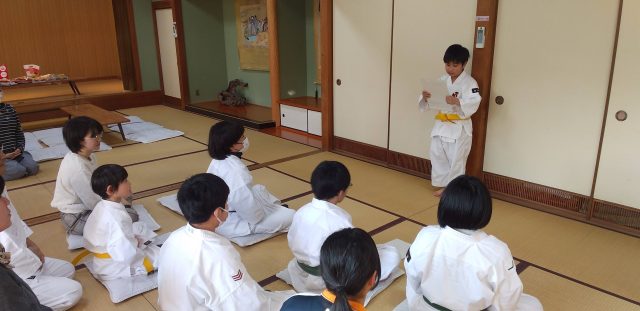 2月27日に年越し会を行いました。基本突きの後、一人ひとり「今年一番うれしかったこと」「来年の目標」について発表、その後ジャンケンゲームで楽しみました。来年もガンバルぞ。